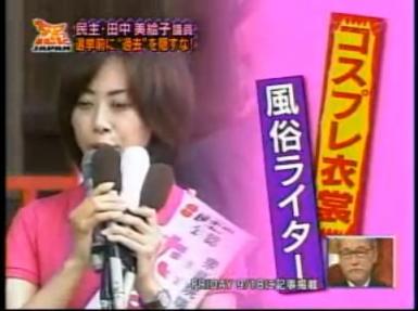 映画「盲獣Vs一寸法師」で大胆な演技を披露していた、田中美絵子議員(石川2区)。