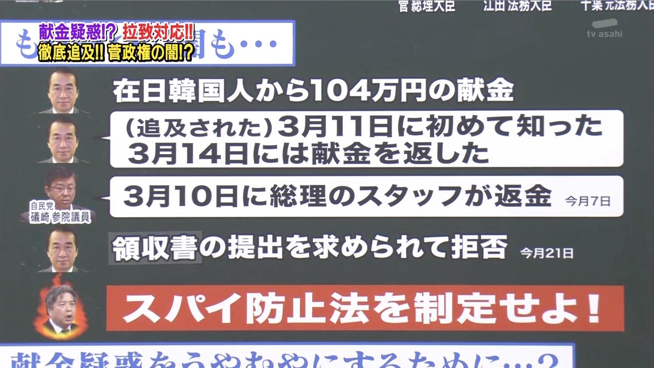 00:20頃~野田総理への外国人献金について