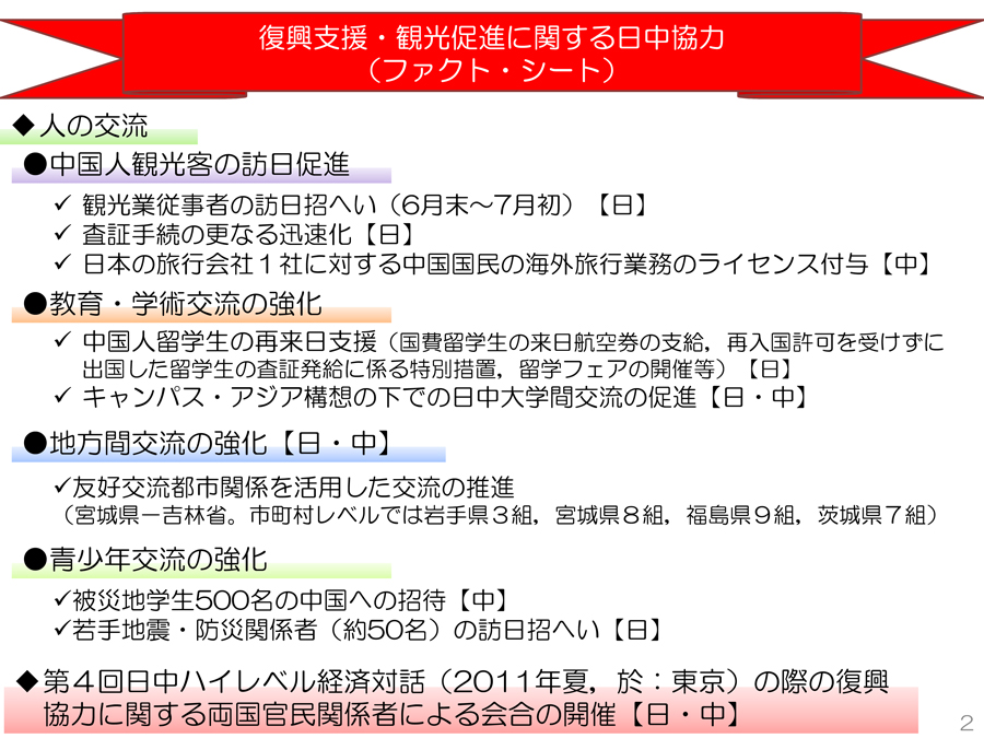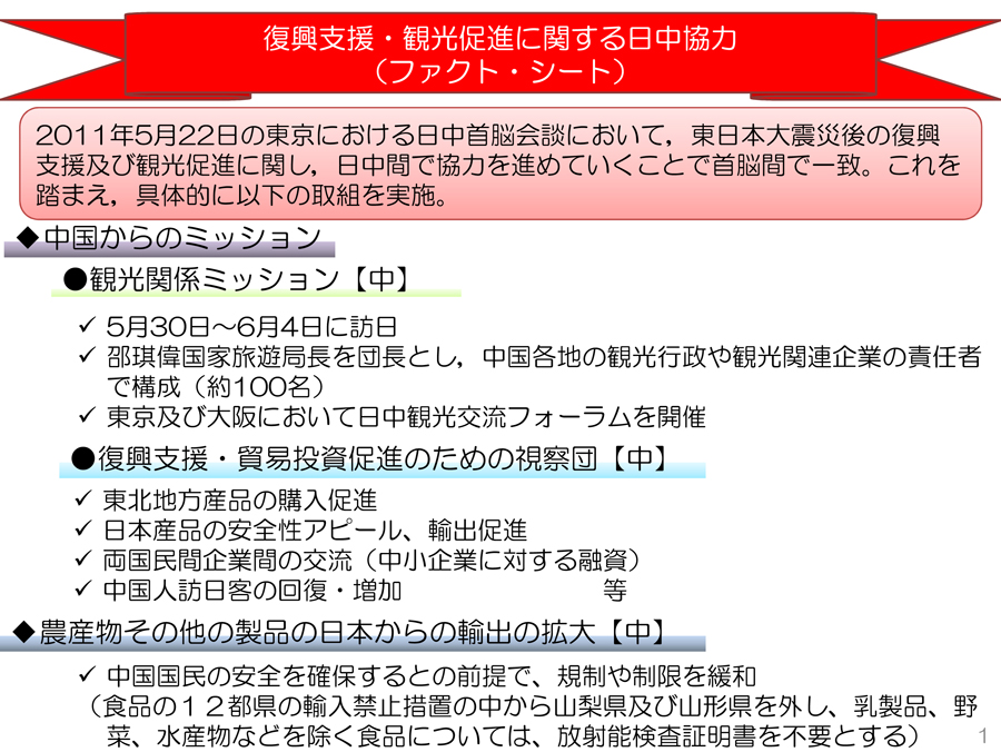 「外務省HPより発表されている、復興支援・観光促進に関する日中協力(ファクト・シート)